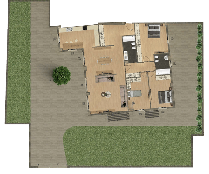 - Pavimentazione in parquet o gres